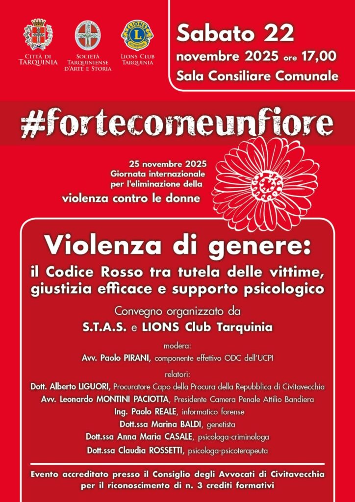22 novembre – Violenza di genere: il Codice Rosso tra tutela delle vittime, giustizia efficace e supporto psicologico” convegno